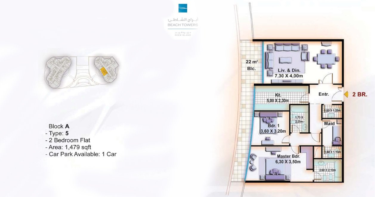 Beach Towers is located in Shams Abu Dhabi, Al Reem Island, a prime waterfront community close to downtown Abu Dhabi, shopping malls, parks, and cultural attractions.