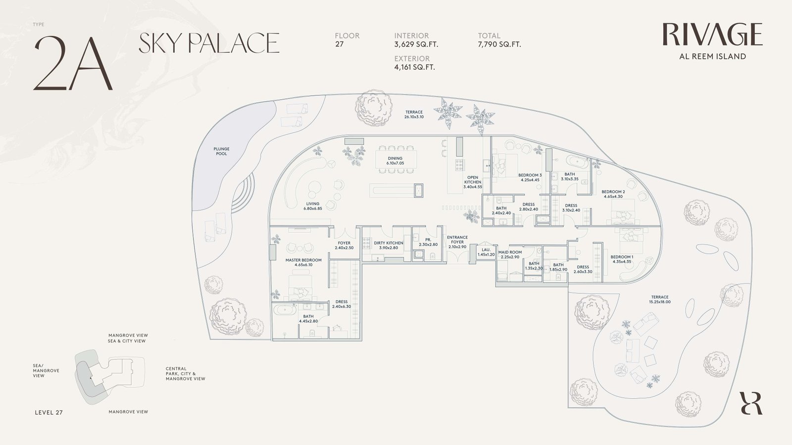Rivage offers a diverse portfolio of 1, 2, and 3-bedroom apartments, elegant 2 and 3-bedroom duplexes, and ultra-luxury Sky Villas and Sky Palaces. Each residence is meticulously planned and includes private balconies, walk-in wardrobes, and dedicated laundry rooms. Select layouts also feature maid’s rooms, catering to family-oriented living.