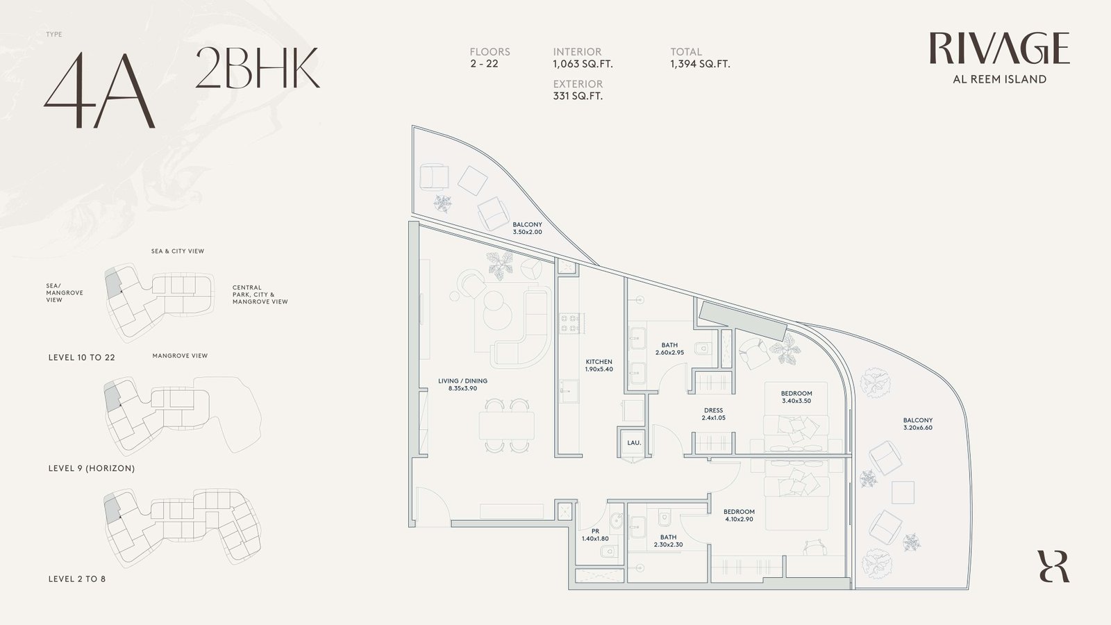 The architectural design of Rivage reflects modern elegance with subtle coastal influences that complement Al Reem Island’s waterfront setting. Expansive glass façades and sculpted balconies maximize natural light and uninterrupted views.