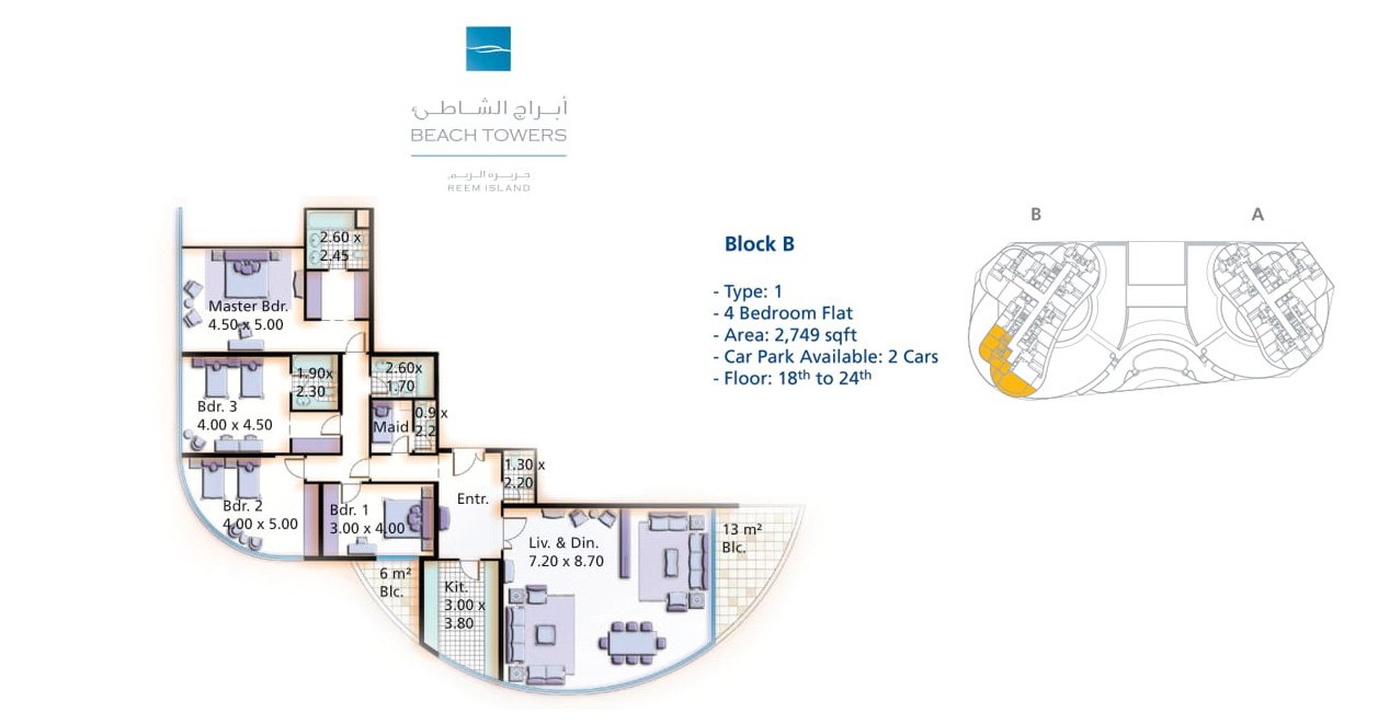 Beach Towers floor plans offer intelligently designed 1 to 4 bedroom apartments and penthouses with spacious layouts, modern kitchens, and private balconies. Each residence maximizes natural light, comfort, and functionality, delivering refined waterfront living on Al Reem Island, Abu Dhabi.